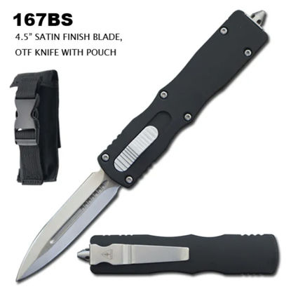 OTF AUTOMATIC KNIFE 3.65″ CLOSED, 5.5 OVERALL” STAINLESS STEEL HALF SERRATED DAGGER BLADE BLACK ZINC ALLOY HANDLE WITH POCKET CLIP
