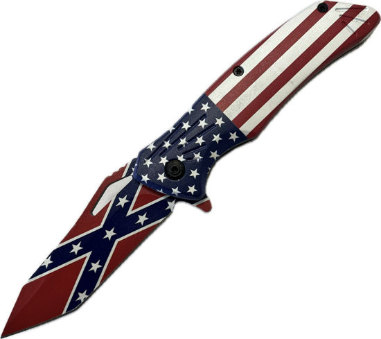 SPRING ASSISTED KNIFE 3.5″ 3MM BLACK STAINLESS STEEL DAGGER BLADE 4.75″ 3D PRINTED EAGLE/FLAG DESIGN ABS HANDLE INCLUDES POCKET CLIP